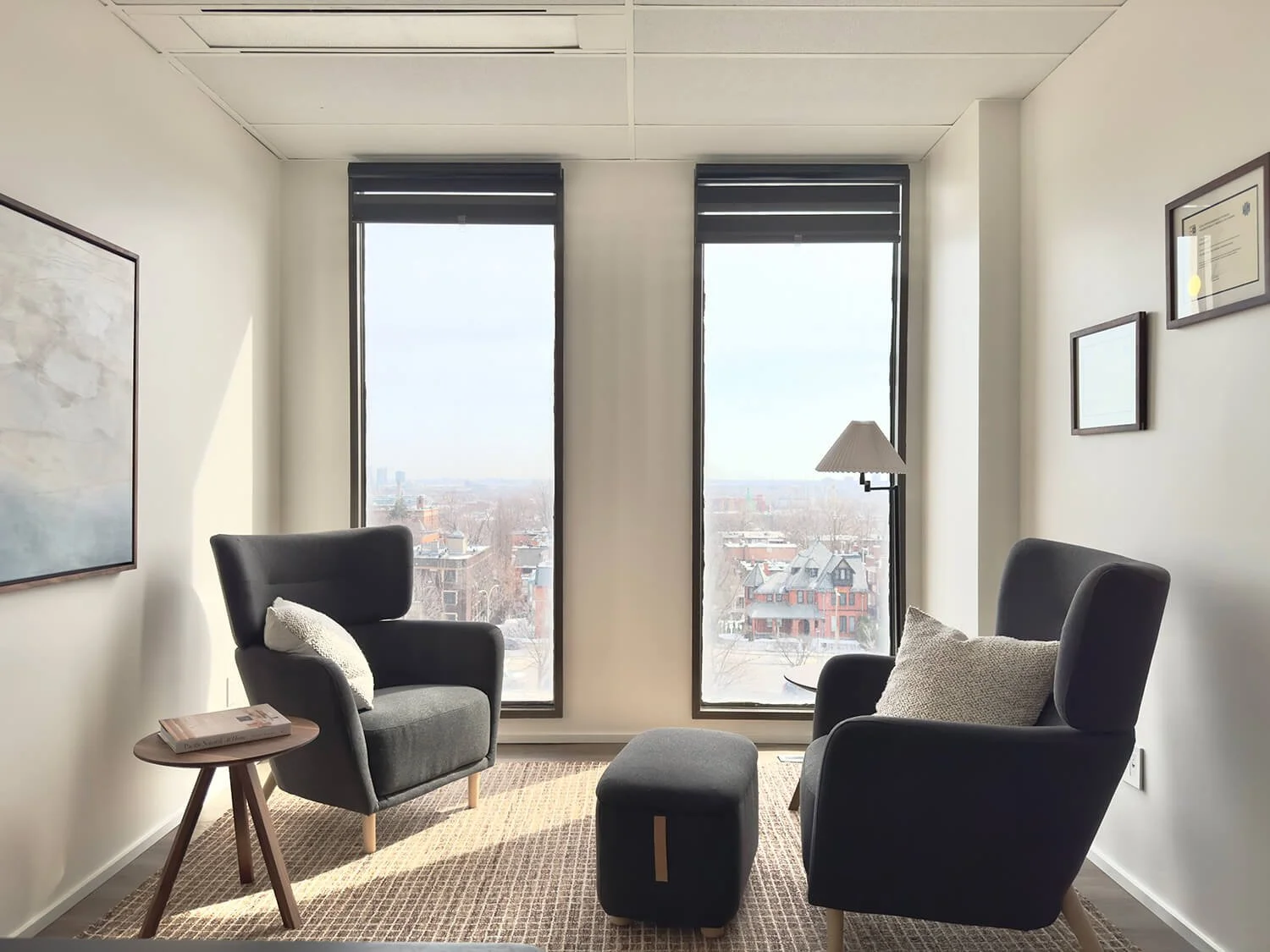 Chez Focus Hypno, nous croyons que l’environnement joue un rôle essentiel dans le processus de mieux-être. C’est pourquoi notre bureau de consultation, situé à deux pas du métro Atwater, a été conçu comme un espace à la fois moderne, apaisant et accueillant. Un lieu pensé pour vous permettre de respirer, de vous recentrer, et d’amorcer un changement en douceur.